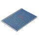 Un bleu moyen, avec une texture de liège de petits trous noirs placés aléatoirement, constitue l'arrière - plan de l'oeuvre originale de HomeWare sur ce Carnet. Sur cet arrière - plan, il y a des bandes horizontales composées de trois lignes blanches minces chacune. Au centre, ces rayures sont ondulées, dans un motif ondulé qui se redresse au fur et à mesure qu'il approche les bords. Il y a du texte en rouge qui dit "Notes". Ce texte est défini pour personnaliser, utiliser tel quel ou supprimer si vous le souhaitez.