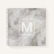 Texture en marbre tendance dans les tons gris avec un monogramme blanc gras dans un cadre carré sur le devant et un simple arrière - plan gris clair sur le dos.