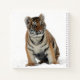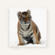 Beautiful portrait photograph of a tiger cub in the snow with snow on his/her nose.