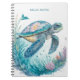Carnet de tortue marine à aquarelle personnalisée avec un design marin. Papeterie animale aux couleurs douces.