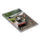 Un train admirablement reconstitué de vapeur et chariots d'une ère passée arrivant à la station de train.