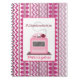 Un carnet de recette comportant une illustration d'un rétro fourneau rose à l'intérieur d'un rectangle au-dessus d'un arrière - plan inspiré tribal avec un modèle de couleurs rose. Personnalisez avec votre nom.