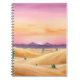 Un paysage désertique apaisant au crépuscule, avec des dunes de sable doré et un ciel rose et orange pastel qui s'estompe dans le violet profond. De petits cactus sont disséminés un peu partout, avec des montagnes lointaines en silhouette contre le ciel. Idéal pour la journalisation des voyages et les carnets d'inspiration désertique.