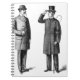 This vintage black and white fashion image from the late 19th century shows two very distinguished victorian gentlemen, wearing a bowler, monocle and a top.
