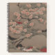 A pink flowering tree in ukiyo-e style, on a brown background gives this notebook an aged print look.