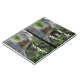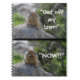 Un écureuil terrestre à l'air drôle avec le slogan du mème internet "Descendez de ma pelouse" sur le carnet en spirale.