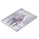 Une licorne blanche neige avec une longue crinière, une queue et une corne d'or se dresse dans la neige qui tombe en douceur dans cette oeuvre numérique de l'artiste Jayne Wilson.