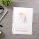 Un carnet féminin pour l'école, la journalisation ou le journal. Arrière - plan blanc, décoré d'une mignonne licorne rose pastel. Personnalisez et ajoutez un nom.