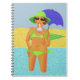 Une femme en bikini sirote un verre cool à la plage pendant les vacances. Carnet à utiliser comme planificateur de voyage ou agenda de vacances