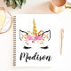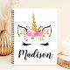 Cahier de visage de licorne avec nom personnalisé et cils