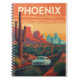 Ce cahier à thème Phoenix présente une illustration de style vintage qui capture la beauté unique du désert de Sonora. La couverture montre une voiture classique roulant à travers un paysage de cactus saguaro et de formations rocheuses rouges, avec la skyline de la ville au loin. Ce cahier à spirale est un cadeau parfait pour les voyageurs, les amoureux de la nature ou quiconque apprécie le charme classique et rétro de l'Arizona.