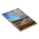 Une conception artistique d'un lac avec le ciel dramatique reflété dans l'eau du lac. Des collines et des champs entourent le lac.