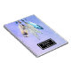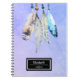 Un design aquarelle avec quatre plumes délicates et douces perlées ensemble accrochées à la bordure supérieure. L'arrière - plan est une douce texture d'aquarelle bleu violet. Un motif tribal avec un thème de style amérindien. Personnalisez avec un nom et un sujet, comme des notes, des bouses, des journaux etc... à l'intérieur d'une plaque noire avec une bordure blanche.