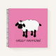 Carnet de mouton mignon et capricieux avec la légende "SHEEP HAPPENS!". Arrière - plan rose. Plusieurs autres couleurs sont disponibles.