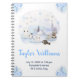 This cute and whimsical notebook features a watercolor winter wonderland scene with adorable arctic animals, such as a polar bear, penguin, cat, whale, seal and a moose. In the background are snow capped mountains, ice caps and trees. Falling snowflakes and beautiful blue floral arrangements give a winter feel. The text combines handwritten script and sans serif fonts for a stylish and modern look. It can be personalized with your baby's birth stats, such as name, size, date and time of birth, or if you would like to give it as a shower gift you are able to edit and remove text.