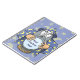 Vieux sorcier avec cape bleue et boule de cristal magique. Utilisez la photo du visage pour customiser. Texte personnalisé.