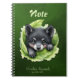 Wolf cub in the green: A view full of magic and warmth. A charming digital illustration features a wolf pup nestled within vibrant green lettuce leaves. The pup has black and grey fur, with a white muzzle and paws, and large, expressive green eyes. Rosy cheeks add to its endearing appearance. The background is a soft, gradient green, creating a gentle and inviting atmosphere.