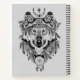 Ce dessin présente le portrait d'un loup portant des plumes tribales et un attrapeur de rêves.