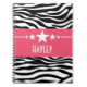 Carnet moderne et branché Sassy Star Zebra, avec un arrière - plan design en zèbre noir et blanc et une frise magenta audacieuse ornée d'un motif étoilé amusant. Ce design girly peut être customisé avec le texte personnalisé de votre choix. Cliquez sur "Customiser" pour trouver d'autres options de personnalisation.