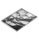 Un rendu noir et blanc de motif clair et foncé, jeté sur un mélange de plantes.