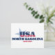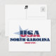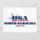 Carte postale de Caroline du Nord. Un design de typographie créatif qui saisit l'essence de la Caroline du Nord avec des couleurs audacieuses, rouge, blanc et bleu, et des éléments patriotiques, dont des étoiles et des rayures.