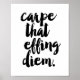 Allez-y et allez-y ! Prenez la journée avec cette impression de citation d'art avec "Carpe That Effing Diem" en noir brosse à la main de style typographie.