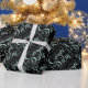Diem-Text in extravagantem, hellblauen Skript-Schriftart auf schwarzem Hintergrund einfügen