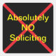 Autocollant populaire No Soliciting maintenant en carré. Simple, efficace. Red X, police de caractères robuste et professionnelle, et lettres jaunes constituent un moyen de dissuasion populaire, semblable à d'autres signaux d'avertissement connus à l'extérieur. Customisez et appréciez.