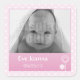 Autocollant personnalisable avec photo et informations de naissance. Pois rose et blanc