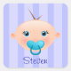Ajoutez un nom ou n'importe quel texte à cette jolie illustration de bébé, ou laissez-le simplement vide. Un joli visage de bébé avec une sucette sur un arrière - plan rayé bleu pastel.