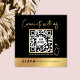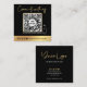 Carte de visite de code QR moderne avec texte de script faux or et arrière - plan noir. Cet effet de feuille d'or instagram et facebook QR code card est parfait pour ajouter vos informations de médias sociaux, insérer votre code QR et logo et les coordonnées pour encourager les clients à se connecter avec vous et vous suivre en ligne. Le design moderne "scan avec un téléphone" fait que ce média social nous suivre carte vraiment tendance et chic.