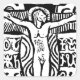 Design inspiré par la coupe de bois du crucifix de Paul Gauguin.