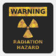Avertissement - Risque de rayonnement - autocollant noir avec un symbole de radiation en couleur jaune et rouille.