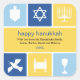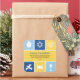 Cet autocollant utilise les icônes d'Hanoukka pour transmettre des voeux chaleureux. Les couleurs vives bleu et or entourent les icônes d'un dreidel, menorah, kiddush cup, entre autres pour encadrer votre message. Idéal pour les enveloppes ou pour coller sur des forfaits de vacances ou des cadeaux. Disponible en couleurs alternatives avec produits correspondants. com com com com