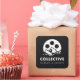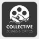 Logo sur arrière - plan noir sur autocollant brillant. c'est amusant d'acheter ces autocollants. pensez à tout le plaisir que vous pourriez avoir avec votre propre autocollant de scènes et d'optique collective.