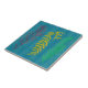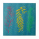 Ce carrelage en céramique d'algues côtières représente 3 brins d'algues en rouge, jaune et vert sur un arrière - plan océanique ondulé turquoise d'aqua turquoise.