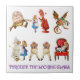 Alice par le psyché, avec la reine rouge, la reine blanche, le Jabberwocky Tweedledee et Tweedledum, et Alice et Dinah et la grande chaise rouge.