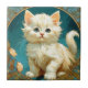 Carrelage en céramique avec un chat blanc dans le style Art Nouveau d'Alphonse Mucha ! Un chat blanc et moelleux regarde le spectateur avec un regard large sur un fond bleu. Un grand cadeau pour les amoureux de les chats et les collectionneurs Art Nouveau !