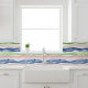 Carreau Aquarelle Abstraite Vert rose Bleu Vagues rayures