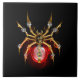 Araignée mécanique à vapeur avec or, engrenages en laiton et lampe en verre rouge sur un arrière - plan noir. Style Steampunk.