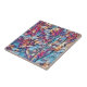 Un design artistique abstrait d'un petit arbre boisé aux couleurs blues, rouges et marron.
