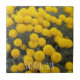 Tuile en céramique qui présente l'image photo de fleurs rondes et jaunes de Santolina, communément appelé Lavender Cotton, un plante d'arbustes à herbes. Un joli design floral ! Sélectionnez votre taille de tuile. Fait une grande cuisine trivet!