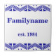 Nom de famille Art DécoCarrelage - Bleu sur blanc avec bordure géométrique