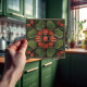 Cette tuile forme un motif harmonieux qui incarne l'esprit Art Nouveau avec ses formes gracieuses et tourbillonnantes. Le carrelage présente un design en relief de vert de forêt riche, sur fond de jade plus profond, créant un jeu d'élégance et de profondeur. Les accents d'olivier doré et la sauge molle apportent une qualité lumineuse à la pièce, suggérant le mouvement et la vie dans le milieu statique. Bien que le design soit imprimé et présente une surface lisse, il porte l'illusion de la profondeur texturée, ce qui en fait un choix idéal pour ceux qui cherchent à insuffler leur espace avec la beauté classique de l'Art Nouveau.