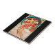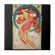 Affiche de lithographie Art nouveau de 1898 de l'artiste tchèque Alphonse Mucha (1860-1939). Belle femme en robe rouge, fleurs dans ses cheveux longs, fluides, rouge vif, son dos arqué, regardant sur les épaules bardées, debout sur ses orteils.