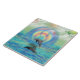 2 dauphins nageant dans l'océan près d'une belle augmentation de couleurs et de l'eau avec 2 planètes, une lune et un soleil coloré. Couleurs roses, bleues, d'aqua, jaunes et vertes dans l'eau et le ciel.