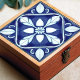 Carreau Azulejo bleu et blanc symétrique floral