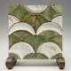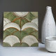 Ce carrelage en céramique magnifiquement travaillé offre l'allure d'un relief texturé avec la commodité d'une surface plane. Le design se compose d'une série d'écailles superposées dans une variété de verdure terreux, de l'olive à la sauge, avec des touches de crémeux blanc cassé et des accents de brun rougeâtre où chaque échelle semble rencontrer l'autre. L'utilisation judicieuse de l'ombrage et de l'écaillage dans l'illustration imite l'apparence d'une surface surélevée, créant un effet de faux relief qui apporte profondeur et dimension à la conception. Fini avec un vernis en crépis qui lui donne une allure rustique et patinée, ce carrelage est idéal pour quiconque cherche à ajouter une esthétique naturelle et tactile à son espace sans la complexité des textures réellement surélevées.