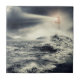 Cette photo comporte une balise de phare brillant avec le temps orageux et se briser ondule.