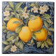 Add timeless elegance to your space with this ornate ceramic tile featuring four golden lemons surrounded by lush green leaves and delicate white citrus blossoms. Framed by intricate baroque-style scrollwork on a rich navy blue background, this design evokes the beauty of vintage botanical illustrations and classic European tile work. The fine detailing and luxurious color palette give the piece the look of fine porcelain or 18th-century decorative arts. Perfect for Mediterranean kitchens, wall displays, elegant hostess gifts, and charming shower favors. The artist’s printed signature is subtly included in the design, adding a touch of authenticity and collectible charm.